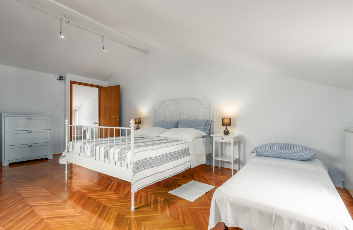 U potkrovlju je vrlo udobna spavaća soba s bračnim krevetom i krevetom za jednu osobu, klima uređajem, ormarom i kupaonicom. Apartman također nudi besplatni WiFi, TV sa satelitskim programima i parking.