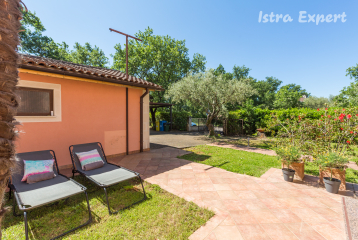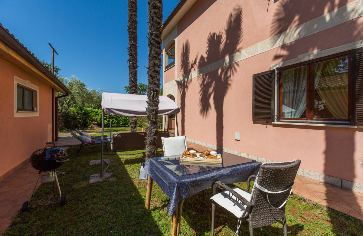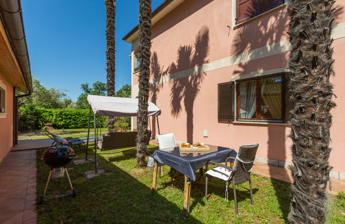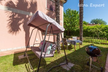 Ispred apartmana nalazi se natkrivena terasa s vrtom, idealna za opuštanje uz jutarnju kavu ili večernji obrok na svježem zraku. U vrtu se nalazi i ljuljačka za dvoje, savršena za uživanje u mirnom okruženju.